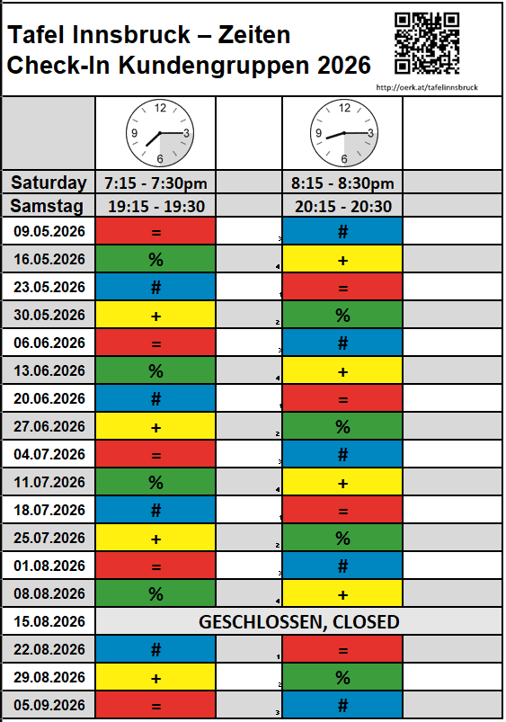 Spenden: Kennwort "Tafel Innsbruck"